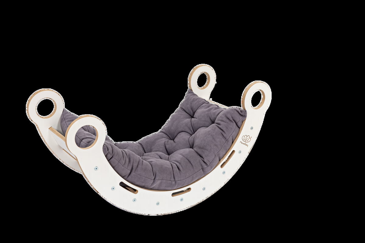 La bascule de rêve en bois blanc pour enfants est un jouet magique, multifonction et polyvalent qui enchante les tout-petits dès 1 an. Ce bascule artisanal premium 100% européen, au design scandinave épuré, s’aligne parfaitement sur la pédagogie Montessori en favorisant l’autonomie, l’activité physique et l’exploration sensorielle. Dotée d’un coussin moelleux, d’un toboggan fluide et d’une échelle réversible, elle transforme la chambre ou le salon en terrain d’aventures sécurisées et éducatives.