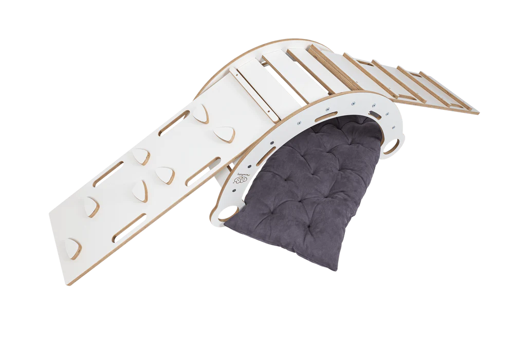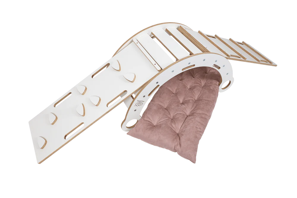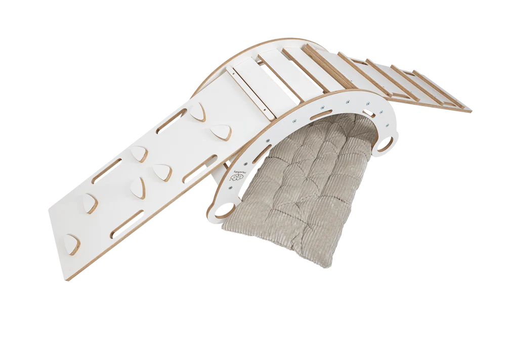 Arche d’escalade – Rocker en bois blanc de rêve avec coussin, toboggan et échelle