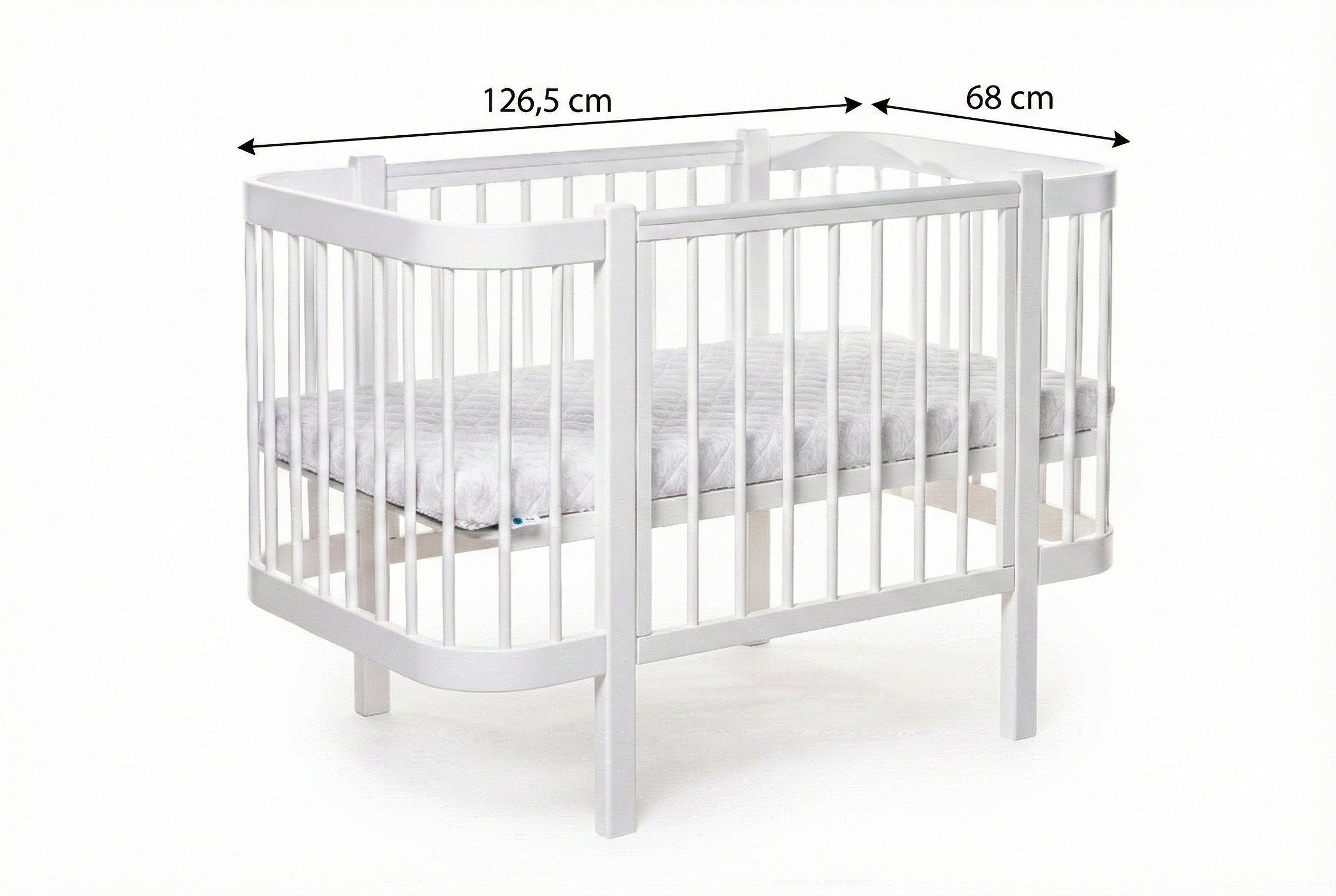 Lit Bébé Évolutif ELIN – avec matelas – Blanc