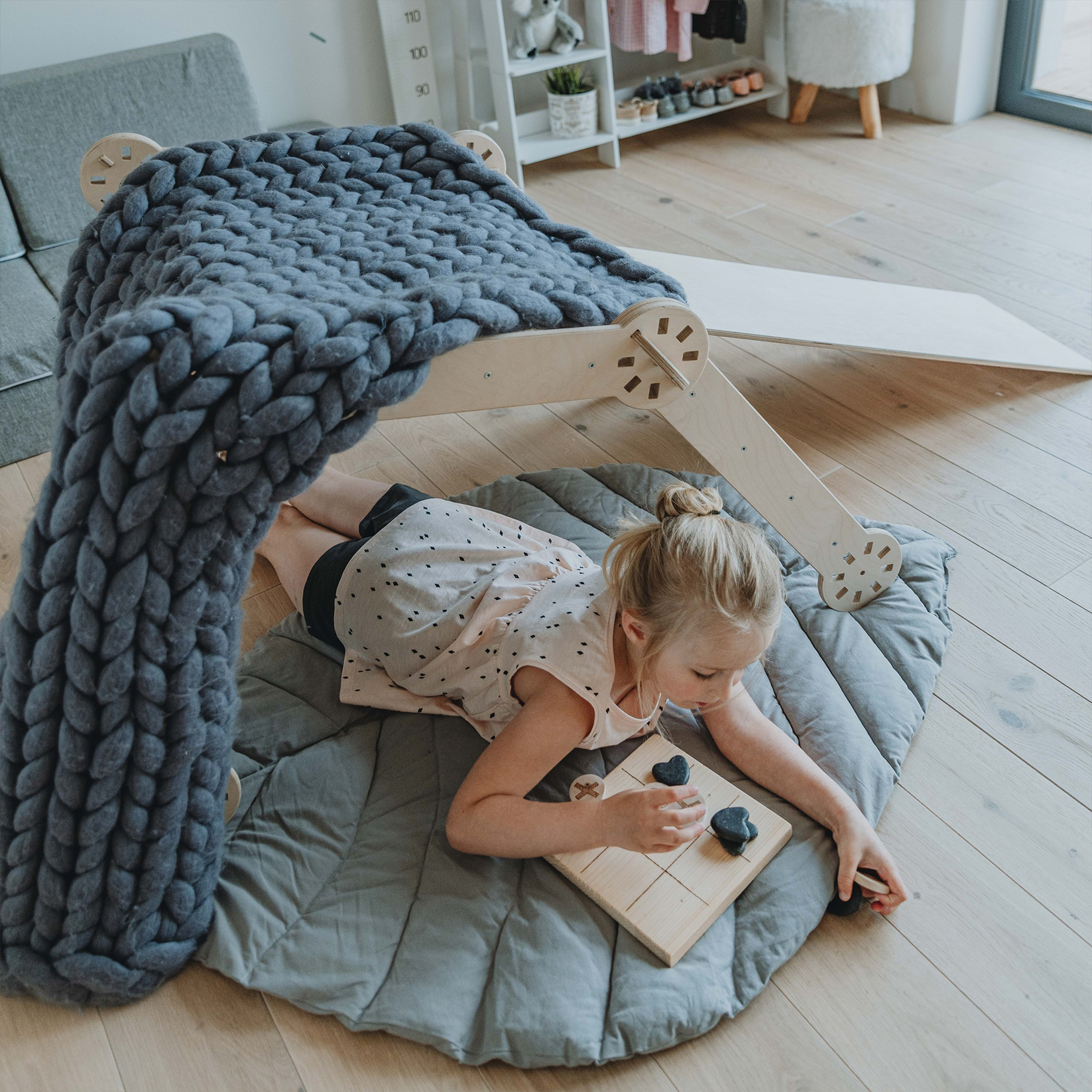 Offrez à votre enfant un espace intérieur sûr et stimulant avec cette structure et sa rampe en bois. Conçu pour les jeunes aventuriers et inspiré par la pédagogie Montessori, ce module d’escalade transforme la chambre ou la salle de jeux en terrain d’expérimentation motrice, imagination et confiance en soi. Il encourage le mouvement libre, l’exploration, l’équilibre et la coordination — tout en s’intégrant élégamment dans un intérieur moderne.